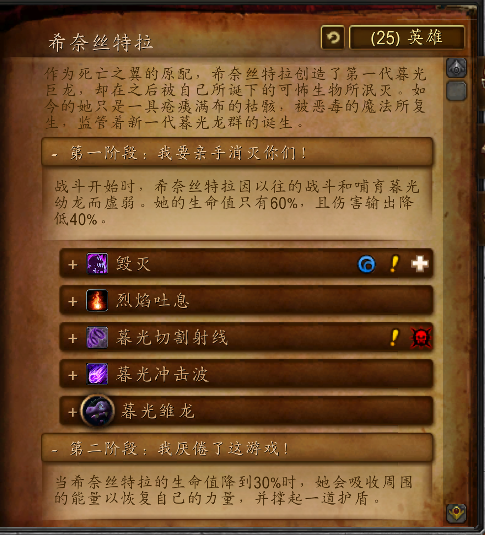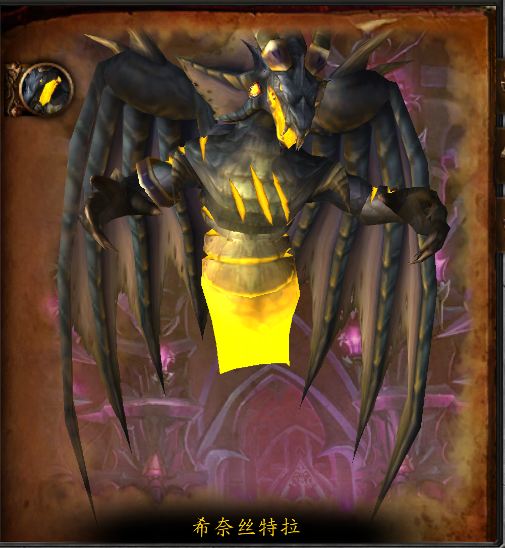希奈丝特拉死亡之翼曾经的配偶,希奈丝特拉在格瑞姆巴托经历了失败。死亡之翼重塑了她的躯体,使她再次以这种面目复活,她将在暮光堡垒的地下看护那些被腐化的龙蛋,培育新一代的暮光龙大军。