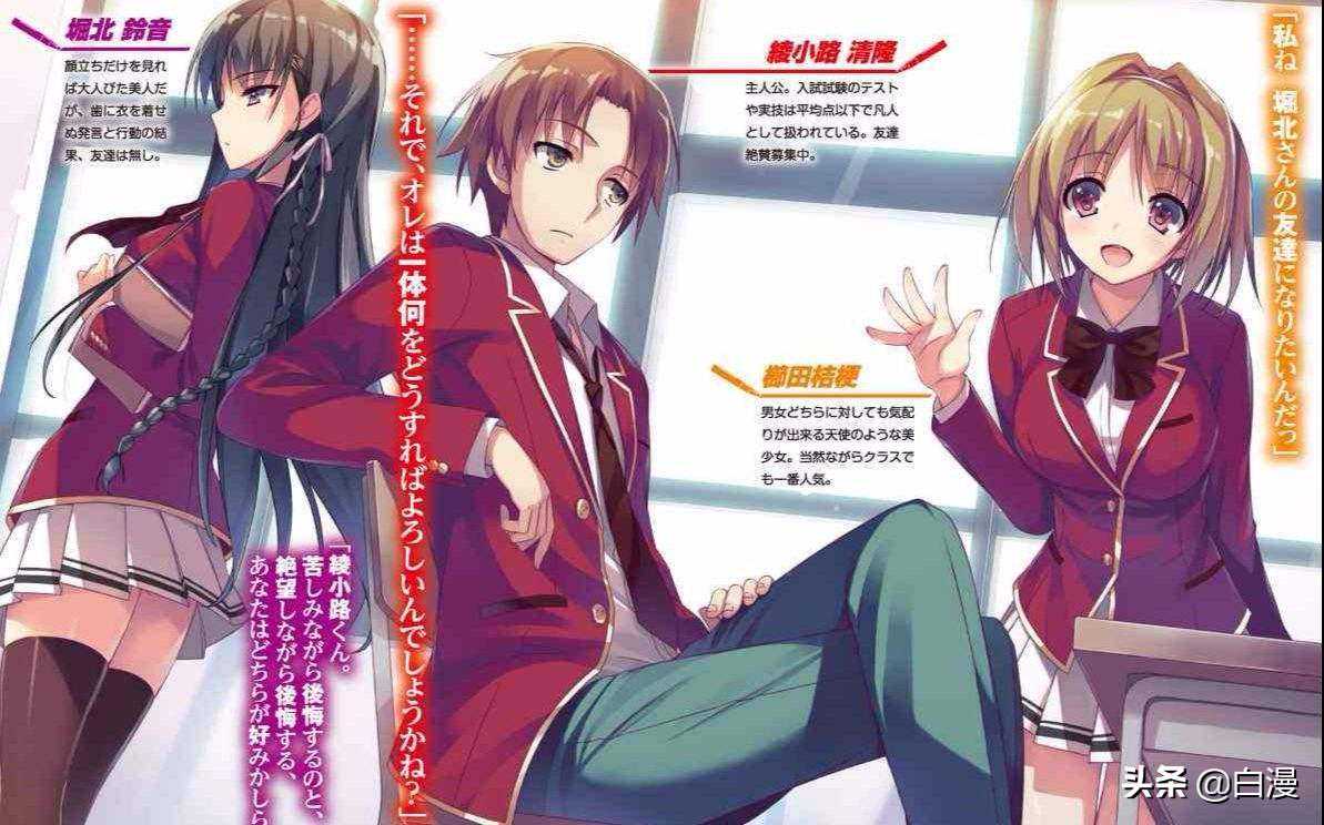 《欢迎来到实力至上主义的教室》的这种故事设定,正是围绕着这种学校的规定展开。