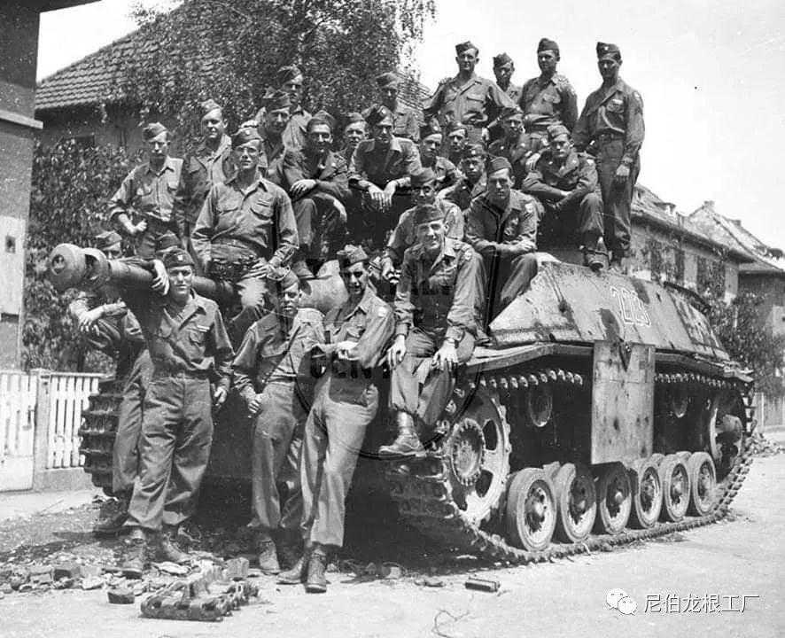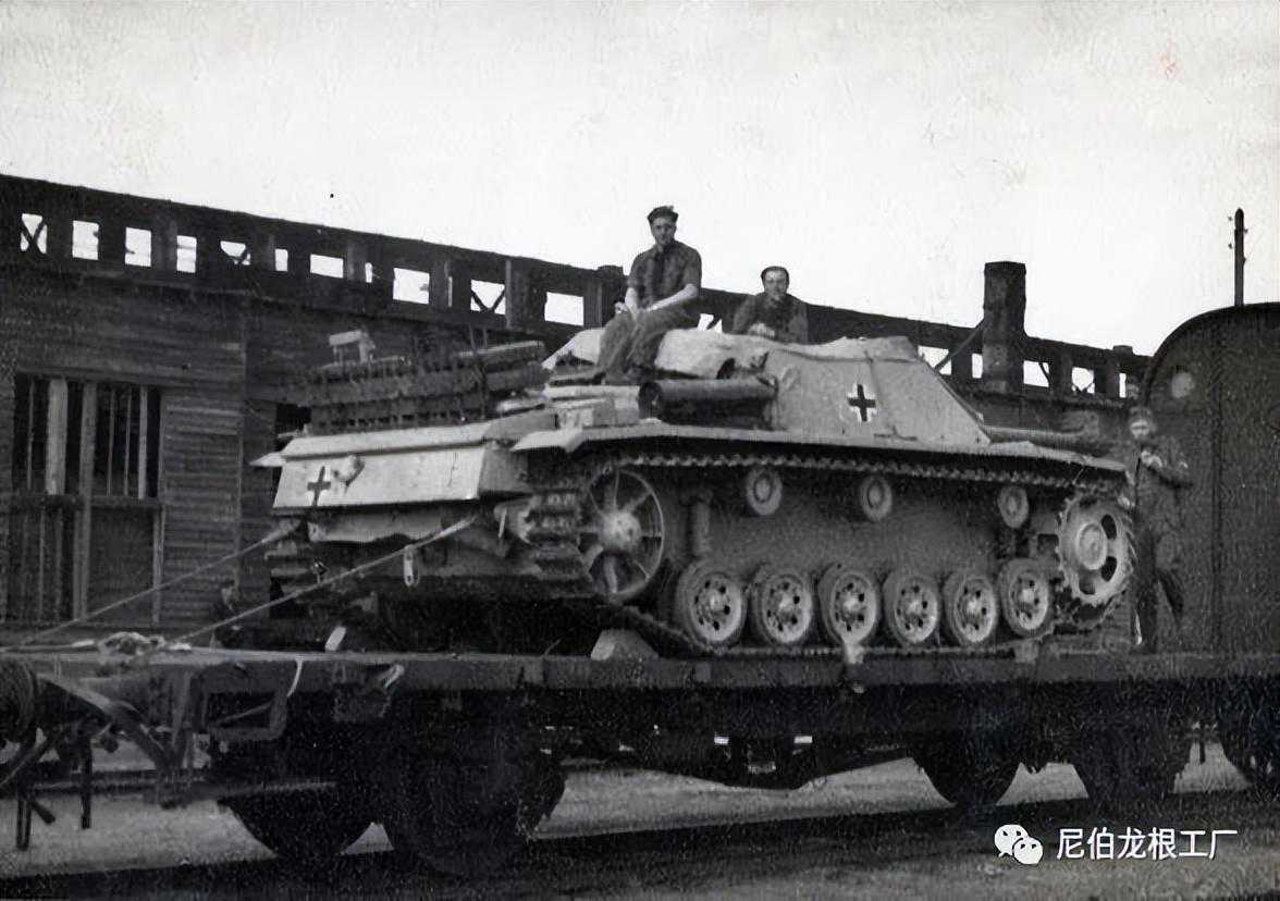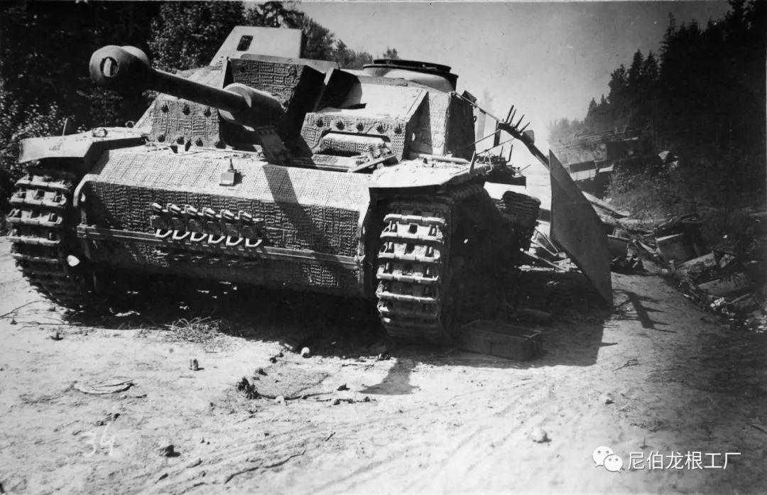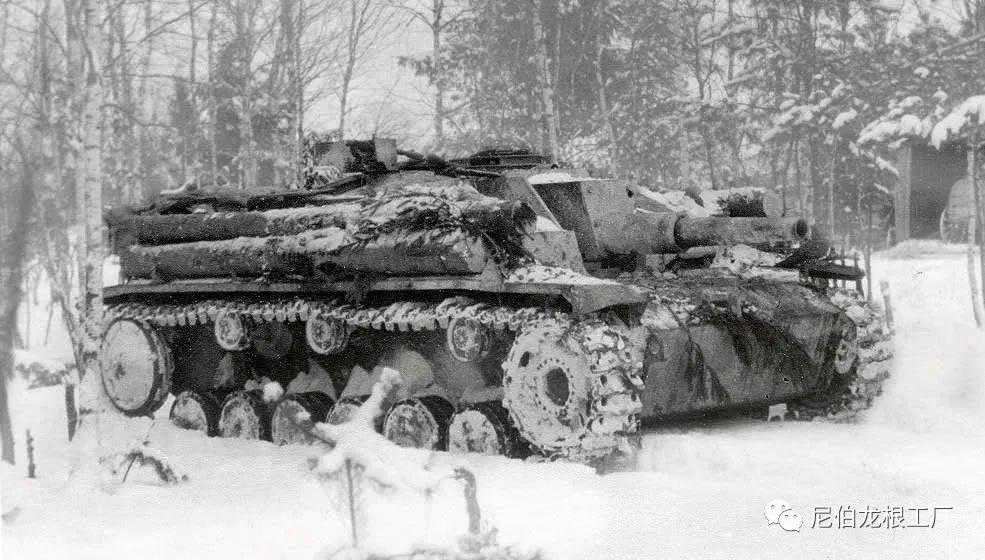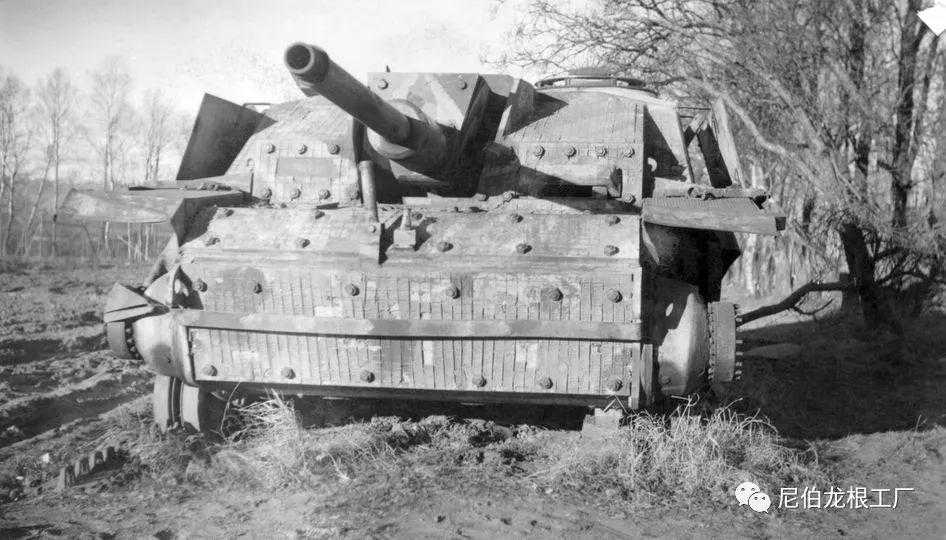 ·卸除裙板,侧面固定着原木的三号突击榴弹炮后期型。