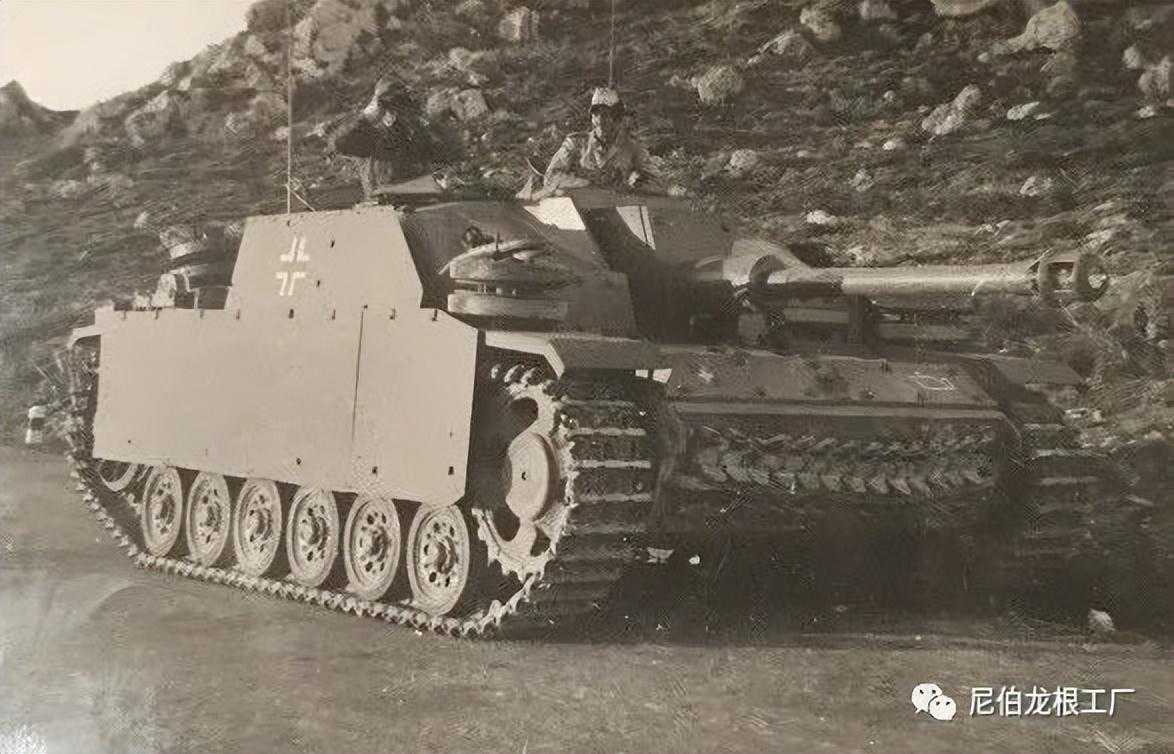 ·驻希腊罗德岛突击师的一辆三号突击炮G型,装有非制式的侧裙和附加装甲,车体颜色较深。