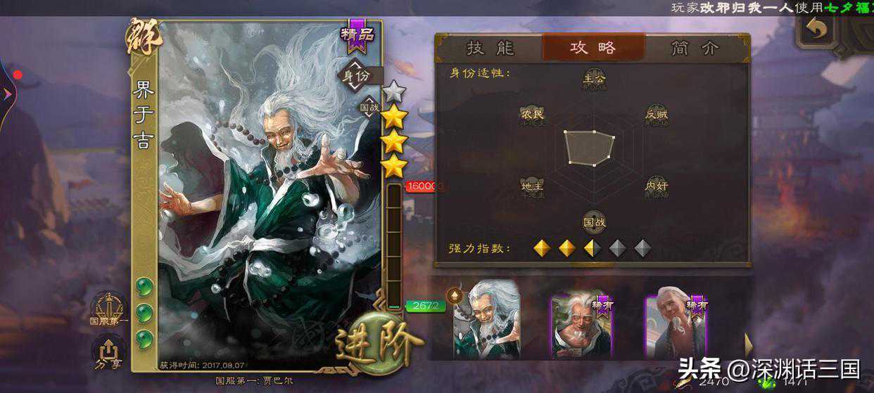 我玩界于吉的时候最喜欢的就是各种魏国卖血武将和神赵云戏志才这一对国家队选手了,刷他两三张无懈可击不信它不质疑。