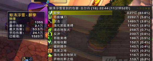个人认为古尔丹战斗中监视醉拳每跳数值比监视总数值更好一些,这能让你对接下来几秒内的血线压力有更直观的认识。