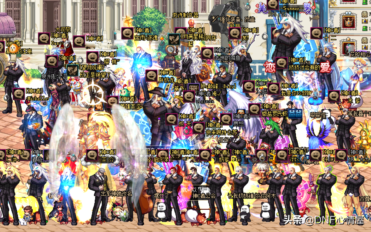 男人的快乐很简单!“西装节做到了,集体穿戴帅气的装扮,阿拉德大陆来站街,虚荣心得到极大满足,能开心的像个孩子。见到如此多西装奶爸,路过的其他职业,估计都瑟瑟发抖。