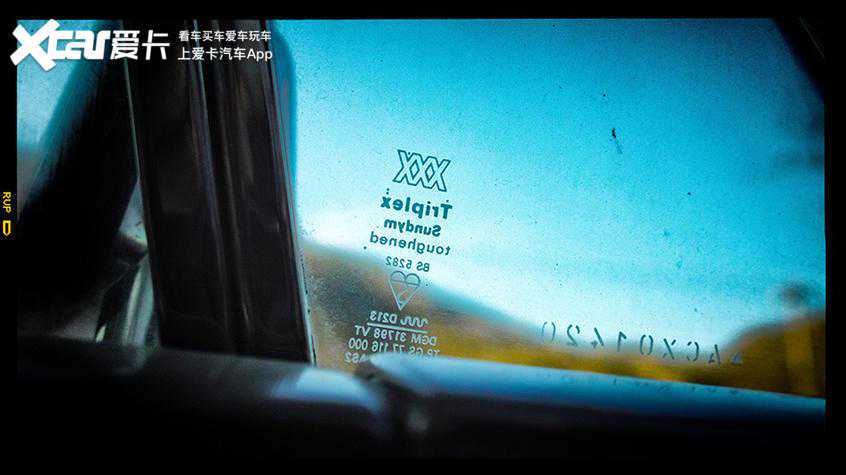 全车玻璃都是原装的,印有生产商、生产日期、产品型号编码等相关信息。